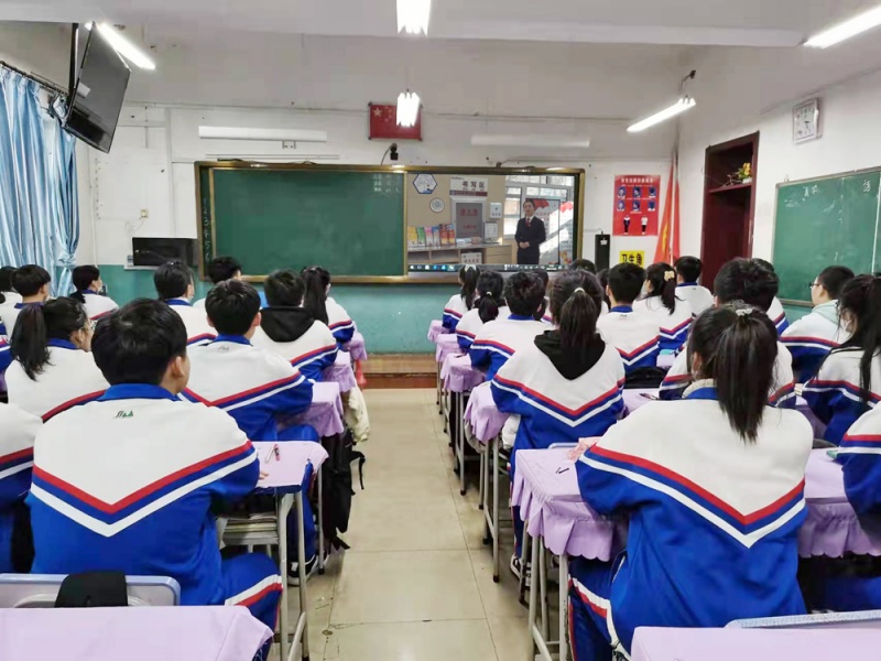 传播法律知识,弘扬法治精神,通过讲解员的视频讲解,为师生们详细介绍了法院的图书阅览室、诉讼服务中心、科技审判庭,诉讼立案流程、文化建设及信息化建设情况……